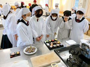 教科「フードデザイン」の授業の一環で、外来講師による和菓子の専門的知識・技術を習得し、
